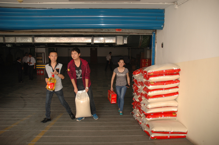 中秋节来临,饭店领导为员工准备了丰富的中秋福利,员工们高高兴兴都把福利领回家。